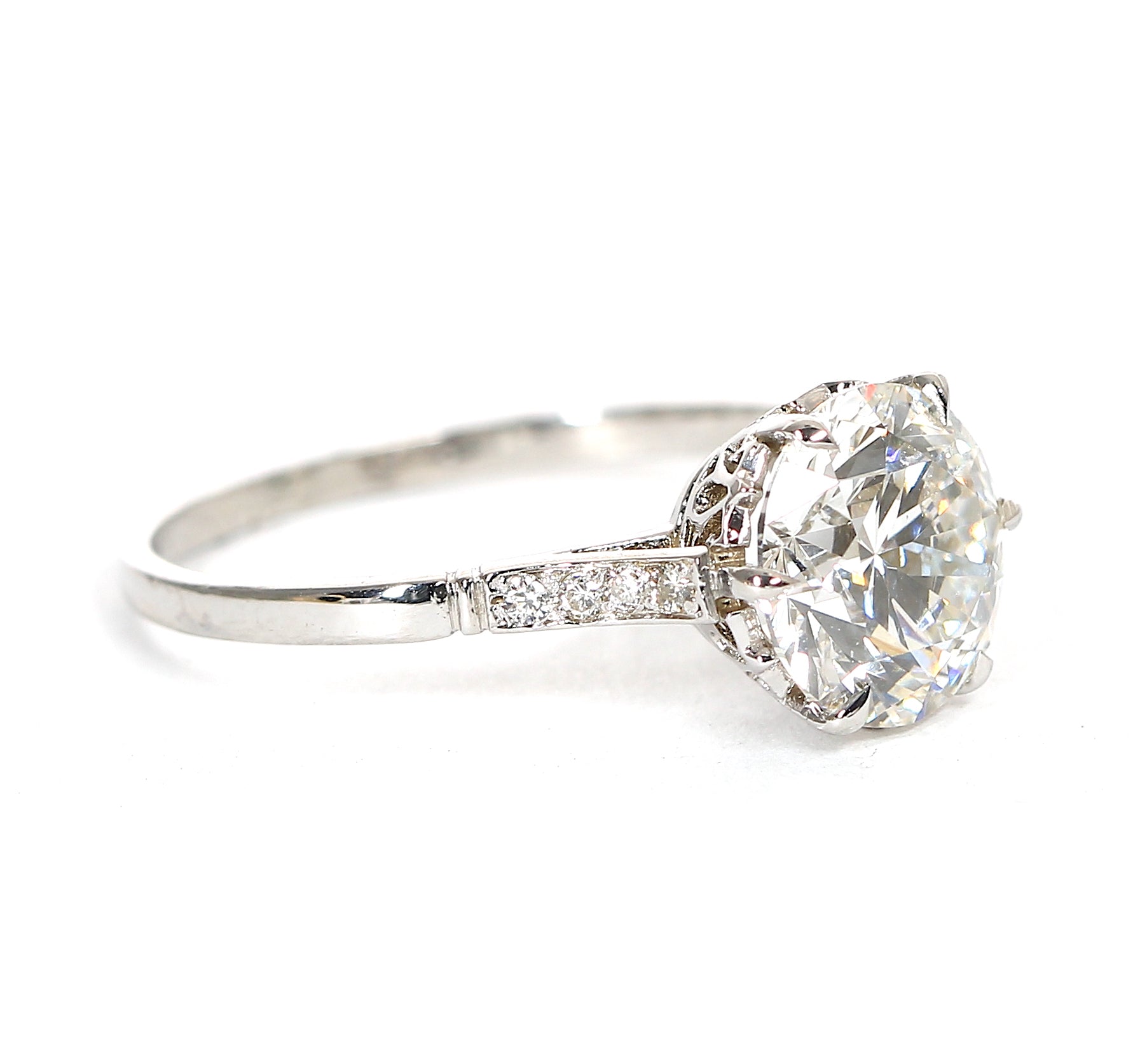 Art-Deco Ring In 18Kt Gold With 1.02 Ctw European Cuts Center Diamond and 0.10Cts Side Diamonds.