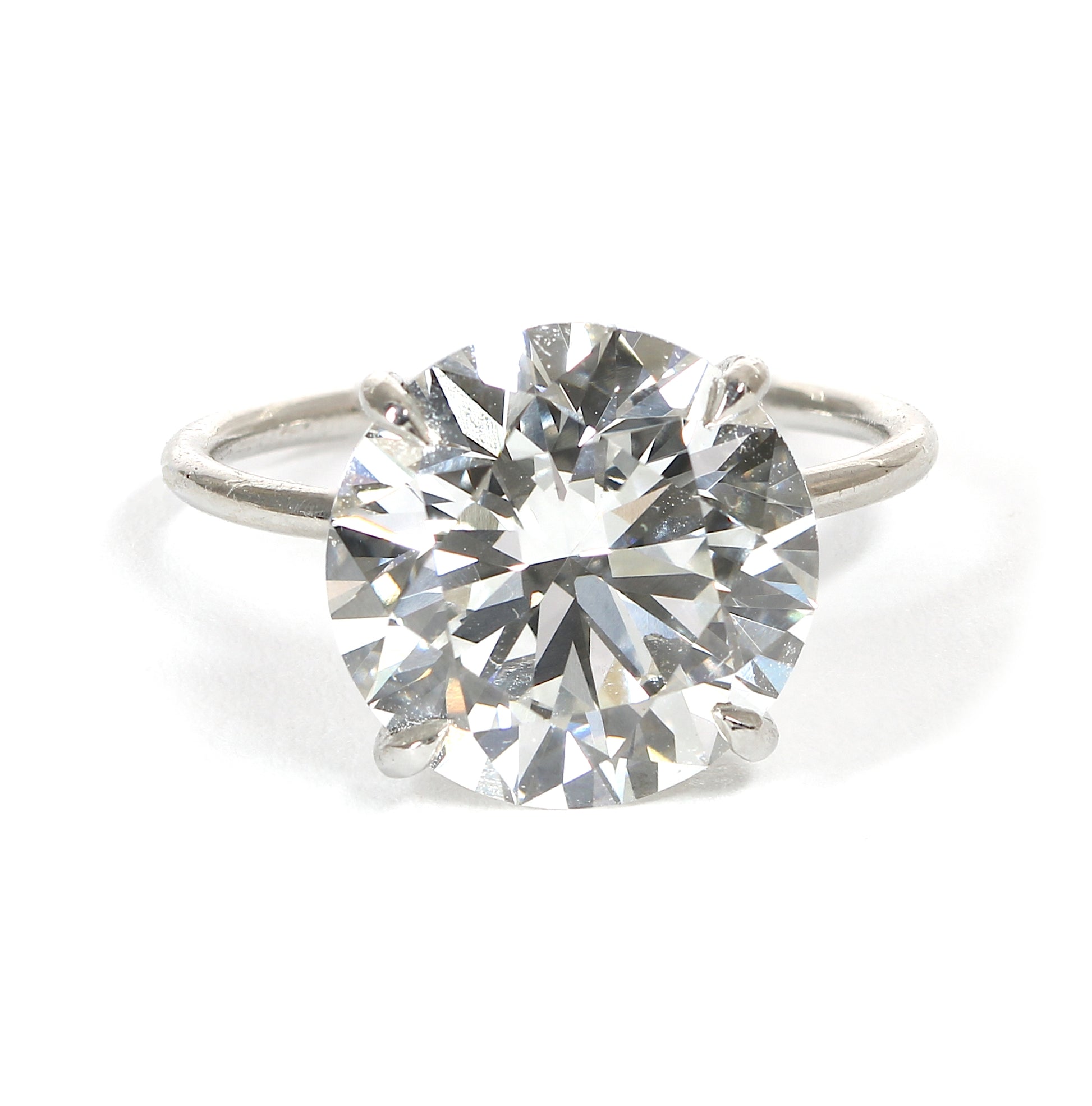 Engagement Ring In Platinum With 6.45 Cts F-VS1 Diamond set in Hand made Platinum Ring.